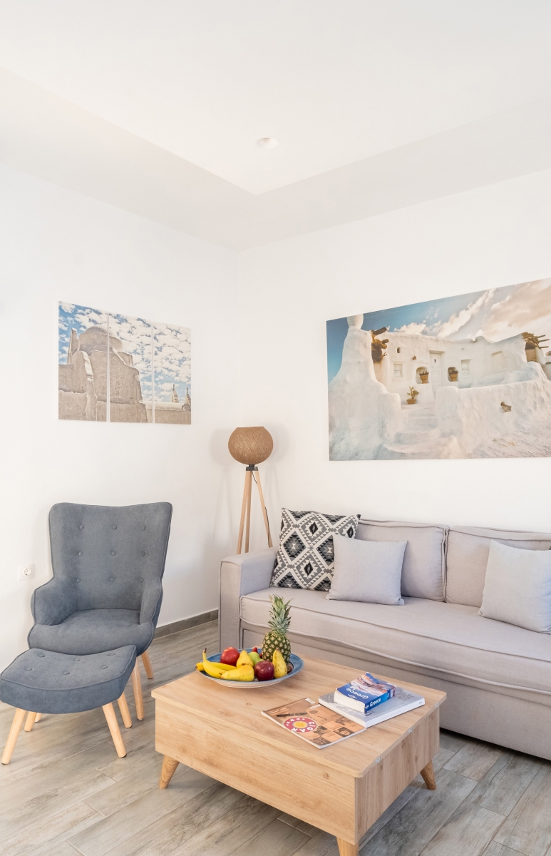 Harmony, privacy and spectacular views of the windmills and old port. This White house is located in the heart of Mykonos Town where everything you may need is just a breath away. Spectacular views of the sunset and the old port are showcased from the modern outdoor area of White house as well as from its terrace. You can not help but enjoy a relaxing, charming and cozy vacation in the ‘’island of winds’’ to emerge rejuvenated like never before. Revitalise your senses and enjoy the magnificent views of Mykonos Town while drinking a cocktail from the spacious terrace. As a typical example of Cycladic architecture, the property features tradition and elegance along with modernity and comfort.